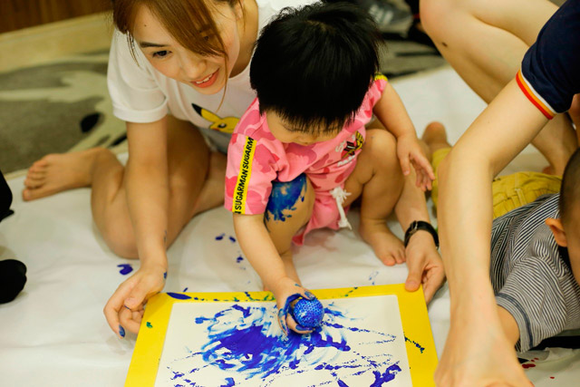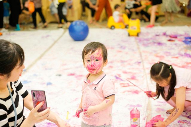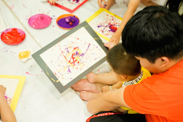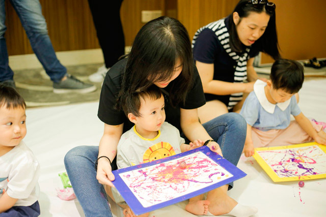 在欢声笑语中,小朋友和爸爸妈妈一起画出他们眼中五彩缤纷的世界,尽情挥洒着自己的创意,让童真恣意绽放。