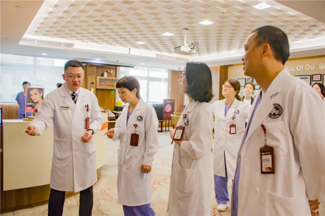在开启一天会诊工作之前,陈浩院长等领导带领周云清教授熟悉玛珂迩的儿科、妇产科、产康医美中心以及玛珂迩的产房、手术室等区域,就我院的基本情况、科室设置、工作流程和医疗制度等方面进行了详细介绍。