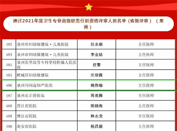 通过2021年度卫生专业高级职务任职资格评审