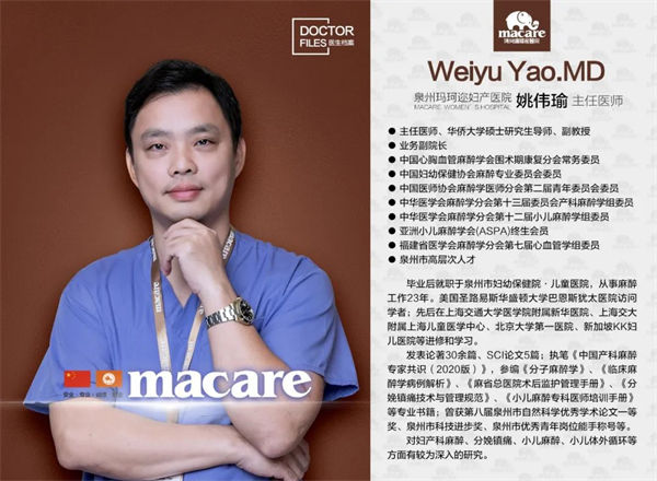 姚伟瑜院长是泉州市高层次人才,毕业于福建医科大学,从事临床麻醉工作20余年,并长期从事麻醉医疗教学和科研工作,具有扎实的理论基础,对妇产科麻醉、分娩镇痛、小儿麻醉、小儿体外循环等有丰富的临床经验。现担任玛珂迩业务副院长、麻醉科医生;受聘华侨大学医学院副教授、硕士研究生导师;担任中国心胸血管麻醉学会围术期康复分会常务委员、中国妇幼保健协会麻醉专业委员会委员等专业职务。