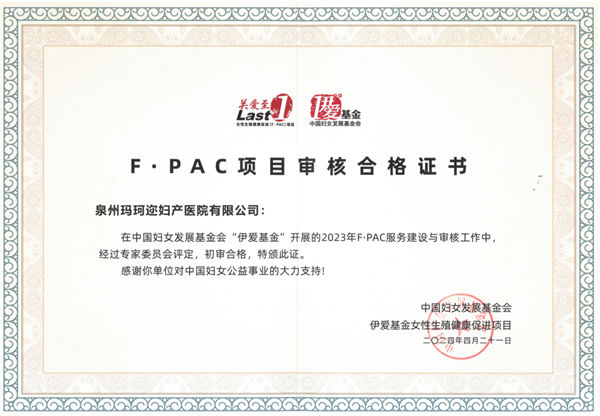 【喜报】玛珂迩妇产医院荣获国家级“F·PAC项目审核合格证书”,为女性生殖健康护航!