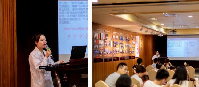 课堂上,林医生从专业医美角度为妈妈们讲解了“初老”形成的根源,细致讲解了如何养成良好的生活习惯以及如何科学防晒等抗初老的方式方法。此外,林医生还向大家介绍了科室抗初老的法宝——光子嫩肤、黄金热拉提2.0、润致娃娃针等医美黑科技,为宝妈们提供更安全、专业、高效的塑美体验。