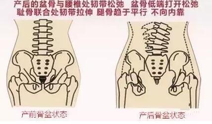 在这个过程当中会造成盆腔骨与骨连接处会形成骨缝,生育后妊娠终止,黄体酮开始急剧下降,黄体酮下降,雄性激素也开始下降,这时候,肌肉,关节,韧带的力量就会减弱。肌肉、关节、韧带的力量减弱了,盆骨之间骨骼就没有办法通过,肌肉,关节,韧带的收缩,恢复到原来的状态。在骨与骨的连接处出现骨缝。
